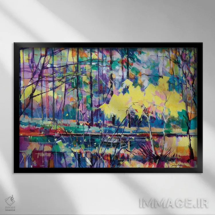 براساس پالت ترکیبی اثر، قاب تیک گرم (چوبی) پیشنهاد اول است و مشکی مات (فریم متوسط) مکمل. برای سفارشهای پروژهای با ابعاد و قابهای اختصاصی با ایماژ در تماس باشید.