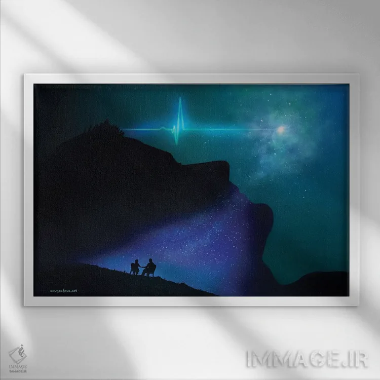 براساس پالت سرد اثر، قاب سفید مات (فریم باریک) پیشنهاد اول است و نقرهای برسخورده (متالیک) مکمل. برای سفارشهای پروژهای با ابعاد و قابهای اختصاصی با ایماژ در تماس باشید.
