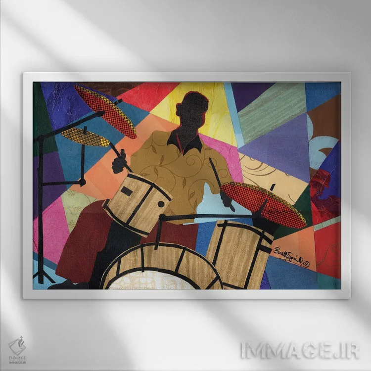 تابلو درامر جَز (نوازندهٔ جاز) اثر اورِت اسپرویل - نمای قاب‌دار سفید