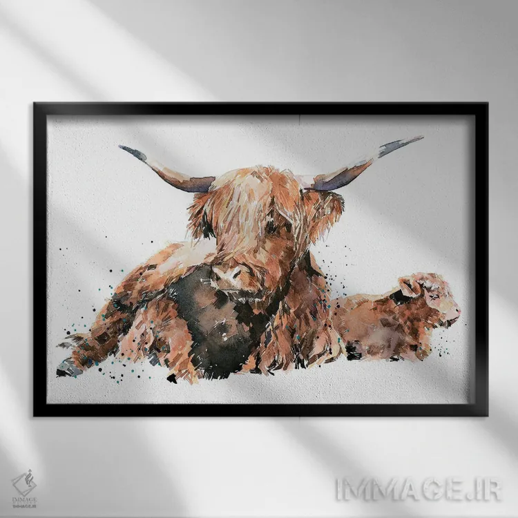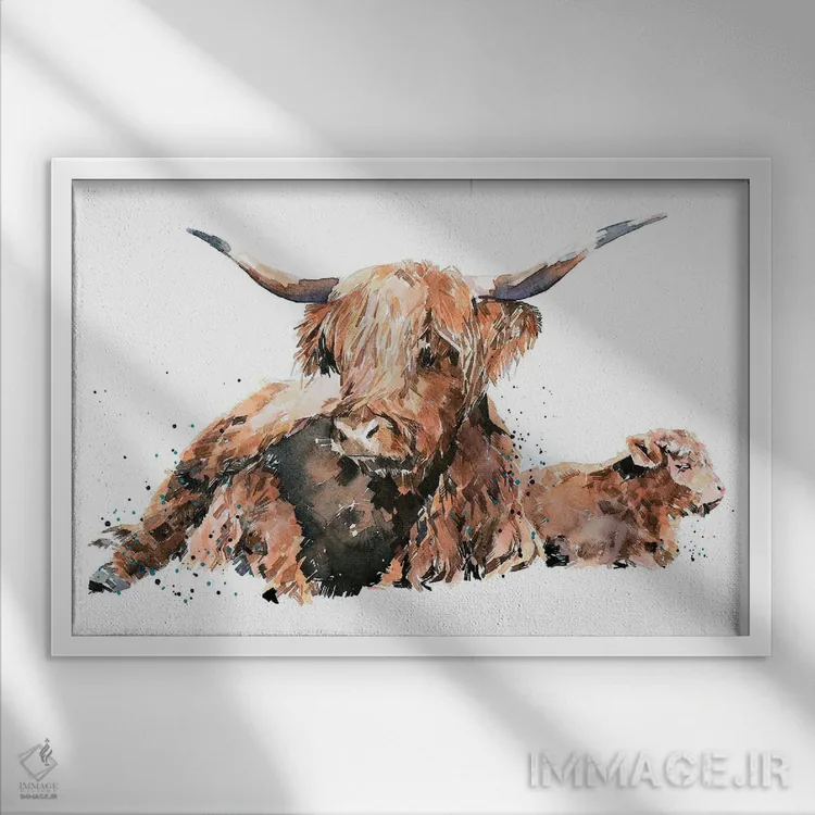 تابلو گاو کوهستانی اسکاتلندی اثر ادز واترکالرز (برند نقاشی آبرنگ)
