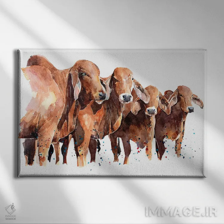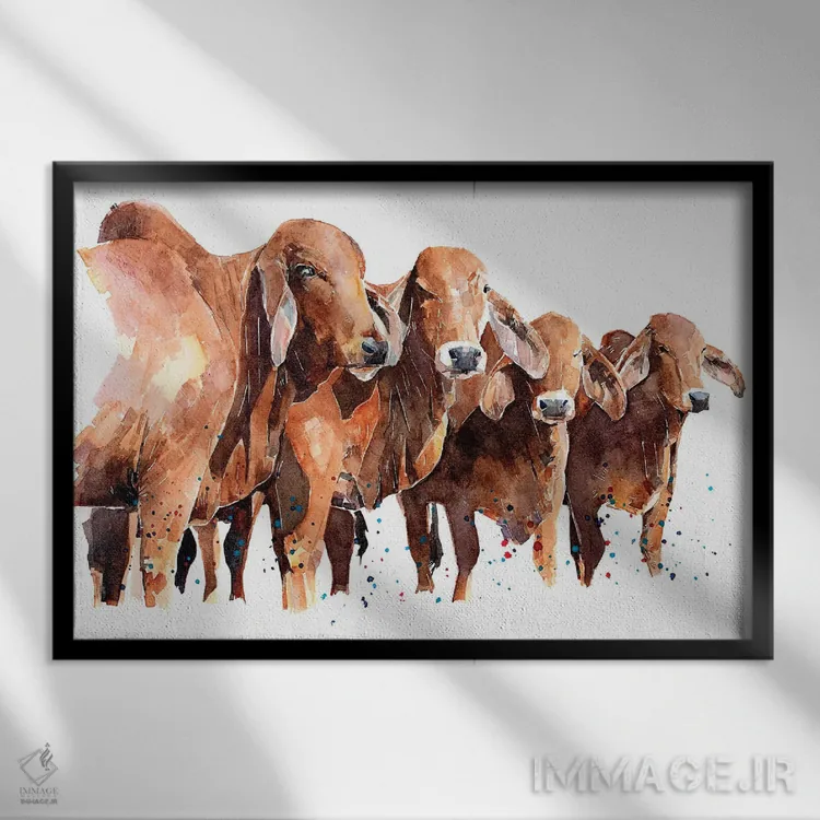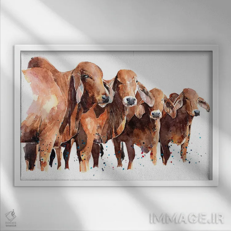 تابلو گاوهای براهمن تگزاسی اثر ادز واترکالرز (برند نقاشی آبرنگ)