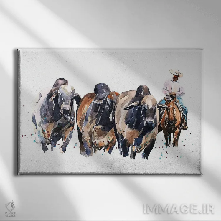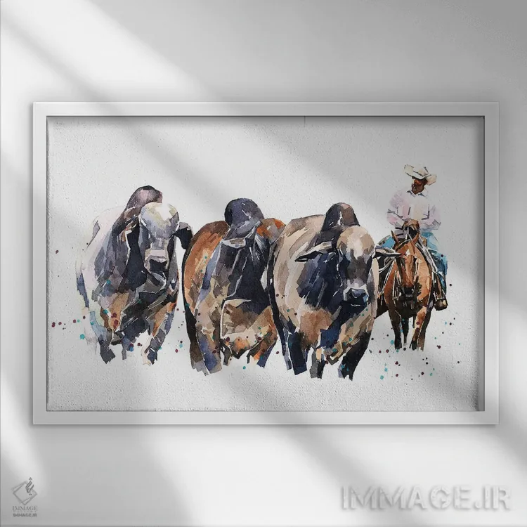 تابلو گاو براهمن و گاوچران اثر ادز واترکالرز (برند نقاشی آبرنگ)