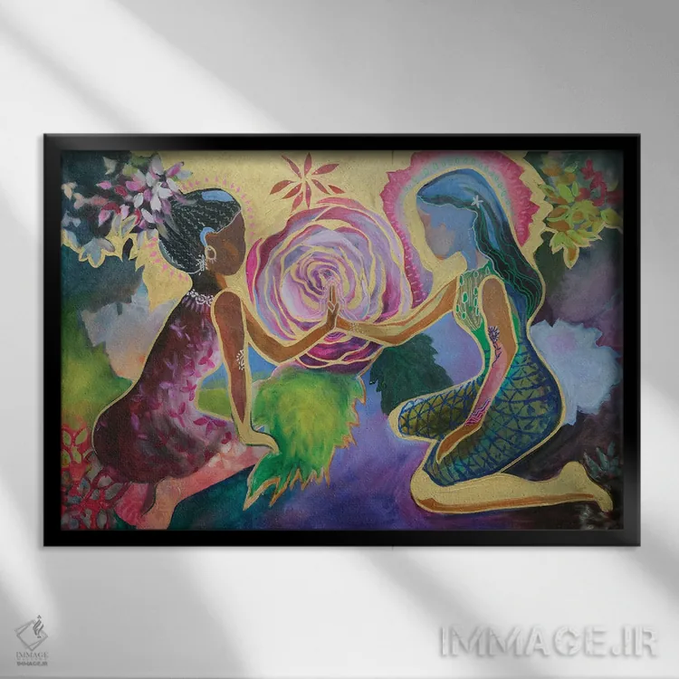 براساس پالت ترکیبی اثر، قاب تیک گرم (چوبی) پیشنهاد اول است و مشکی مات (فریم متوسط) مکمل. برای سفارشهای پروژهای با ابعاد و قابهای اختصاصی با ایماژ در تماس باشید.