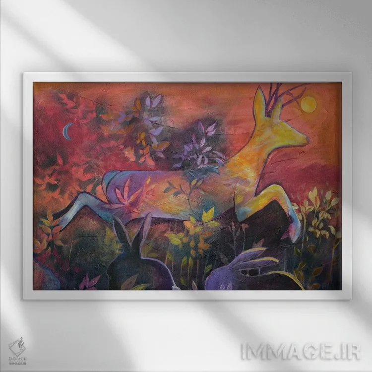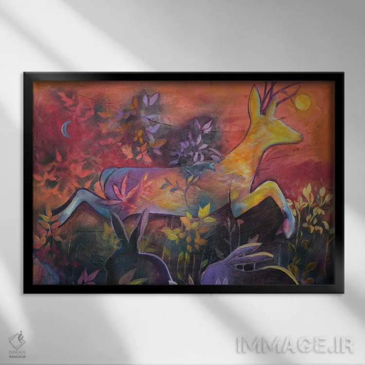 براساس پالت ترکیبی اثر، قاب تیک گرم (چوبی) پیشنهاد اول است و مشکی مات (فریم متوسط) مکمل. برای سفارشهای پروژهای با ابعاد و قابهای اختصاصی با ایماژ در تماس باشید.