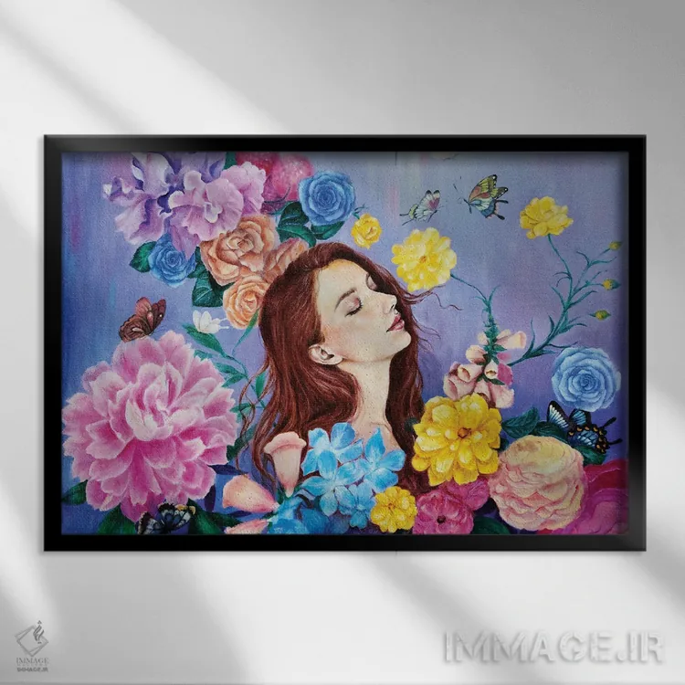 براساس پالت ترکیبی اثر، قاب تیک گرم (چوبی) پیشنهاد اول است و مشکی مات (فریم متوسط) مکمل. برای سفارشهای پروژهای با ابعاد و قابهای اختصاصی با ایماژ در تماس باشید.