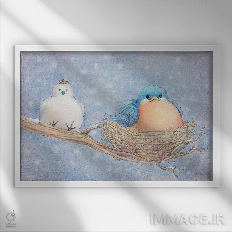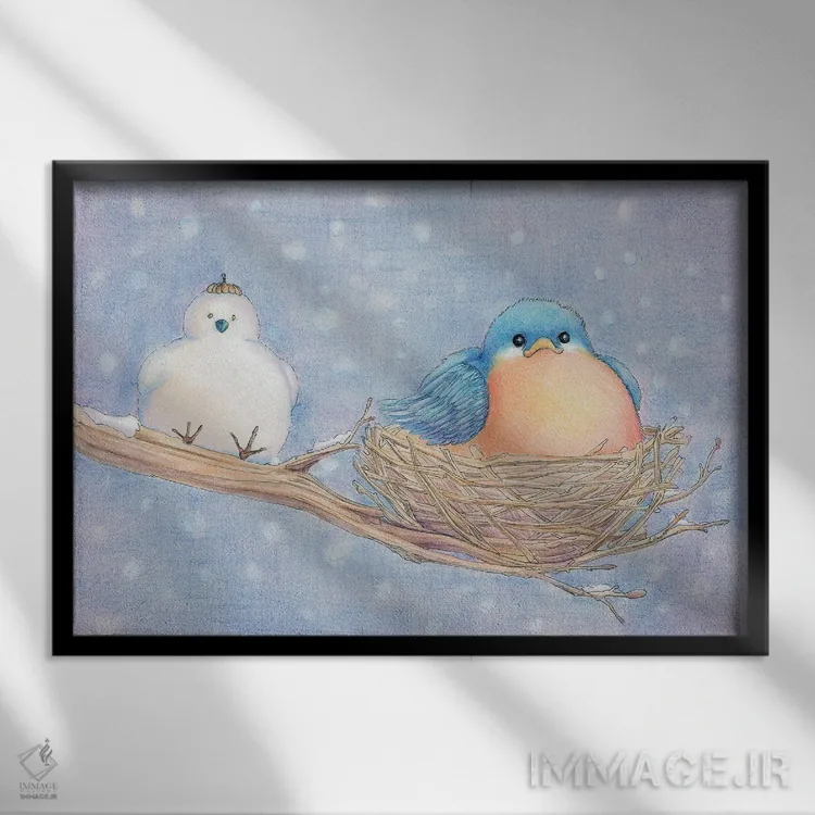 تابلو دکوراتیو پرنده آبی تنها اثر مایت فلای آرت اند ایلاستریشن
