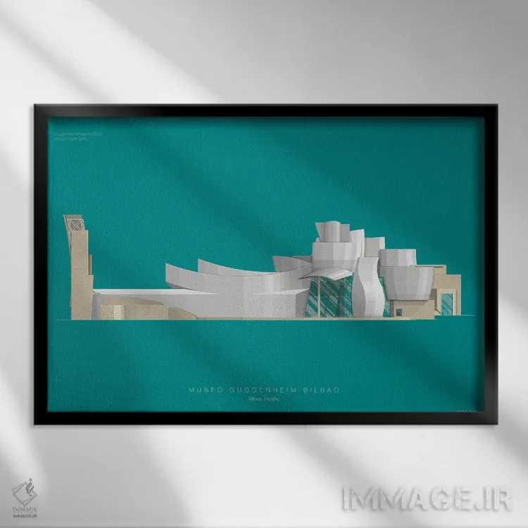 تابلو موزه گوگنهایم بیلبائو اثر فرد بیرچال - نمای قاب‌دار مشکی
