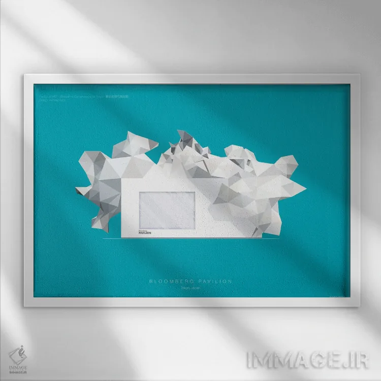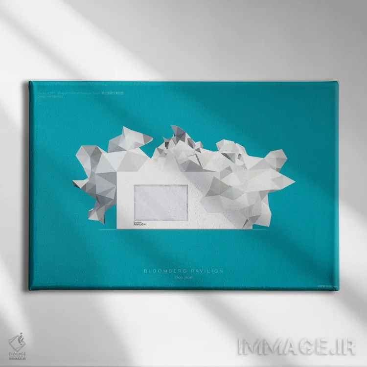 در «پاویون بلومبرگ—توکیو، ژاپن» اثرِ «فرد بیرچال»، توجه به جزئیاتِ گرافیکی و تعادل رنگی دیده میشود؛ مناسب برای دیوار شاخص.