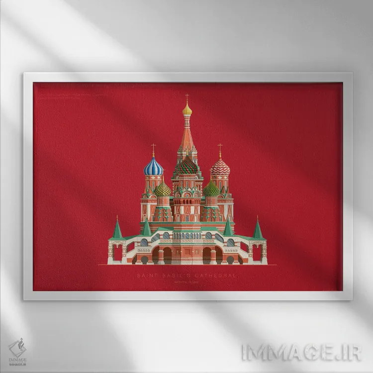«کلیسای جامع سنت باسیل—مسکو، روسیه» اثرِ «فرد بیرچال» برای چیدمانهای صنعتی یا مدرنِ شهری هم مینشیند؛ چون تصویر، واضح و امروزی است.