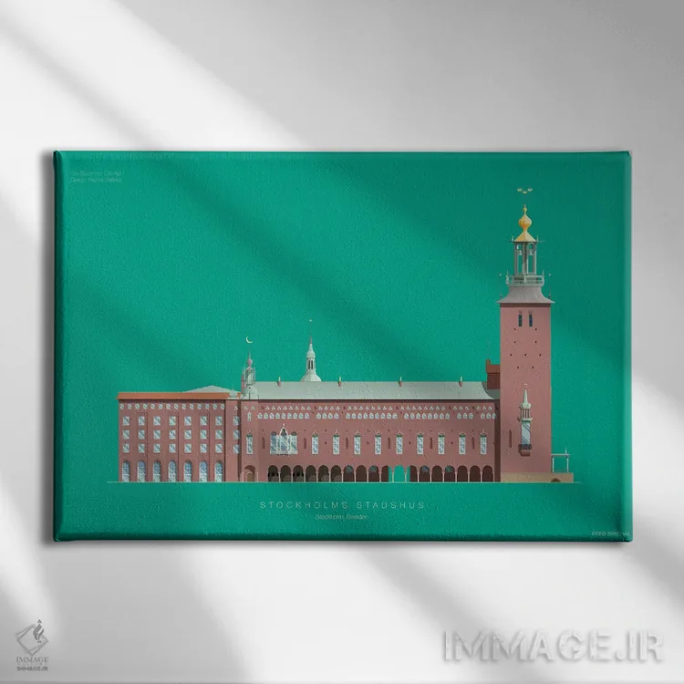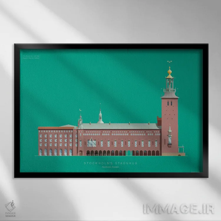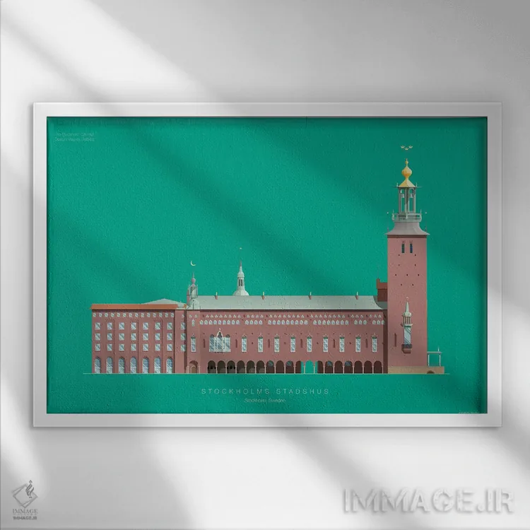«تالار شهر استکهلم—استکهلم، سوئد» اثرِ «فرد بیرچال» برای چیدمانهای صنعتی یا مدرنِ شهری هم مینشیند؛ چون تصویر، واضح و امروزی است.