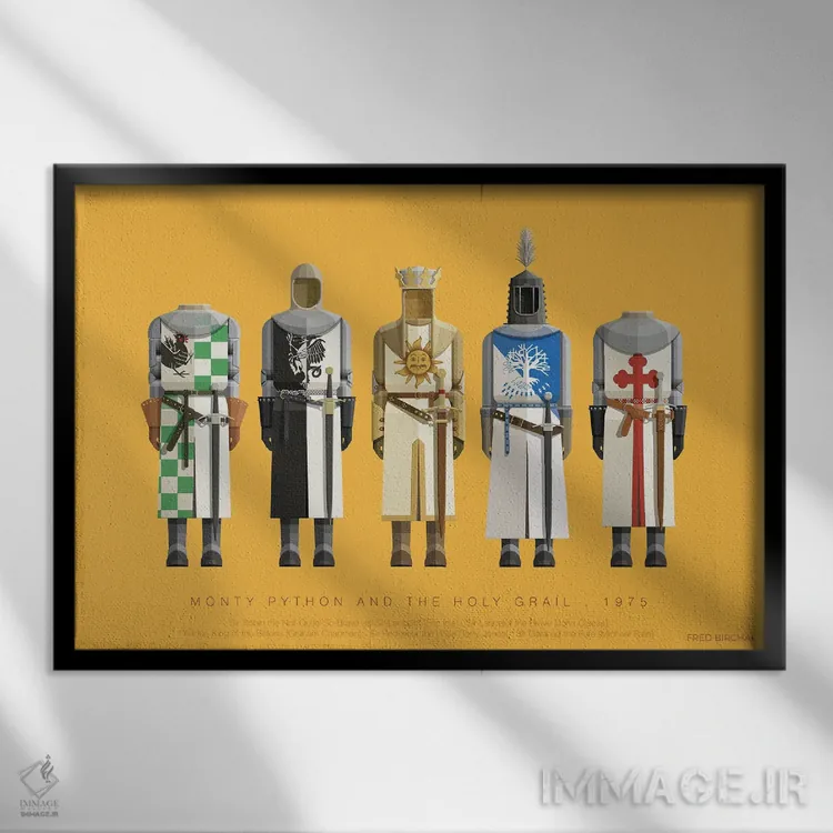این اثر با حس این اثر و پرداختِ هنری، برای دکورهای روشن و مینیمال عالی جواب میدهد: «مونتی پایتون و جام مقدس، ۱۹۷۵» اثرِ «فرد بیرچال».