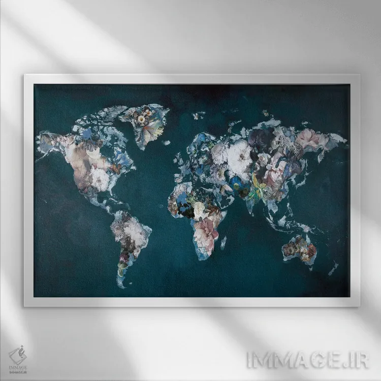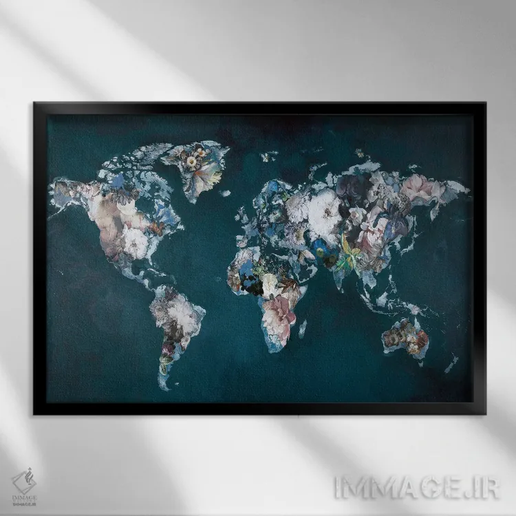 اگر دنبال یک قابِ انتزاعیِ شیک هستی، «نقشه جهان مد سطح بالا (Haute Couture)» اثرِ «دیزاین فابریکن (استودیو طراحی دانمارکی)» با زبان هنری انتخابی مطمئن است.