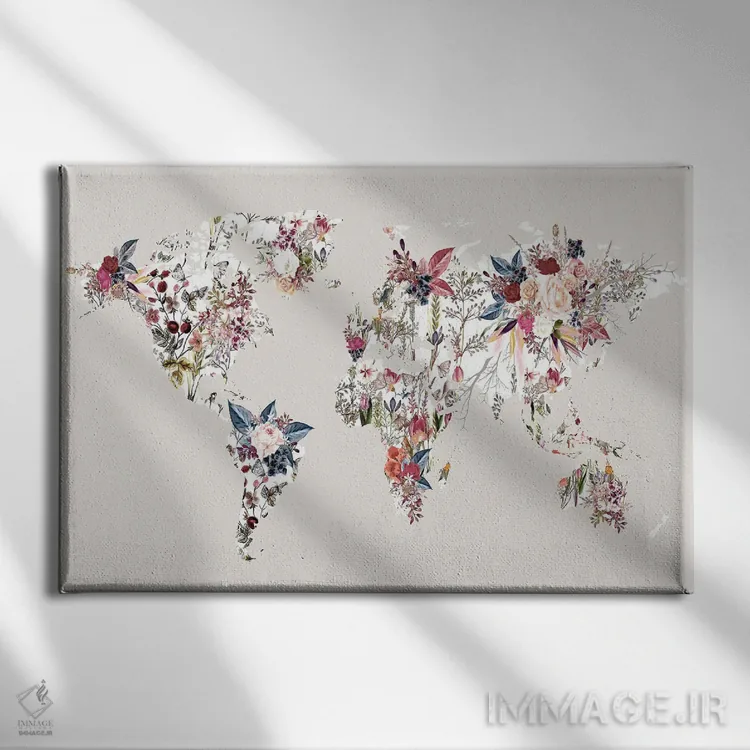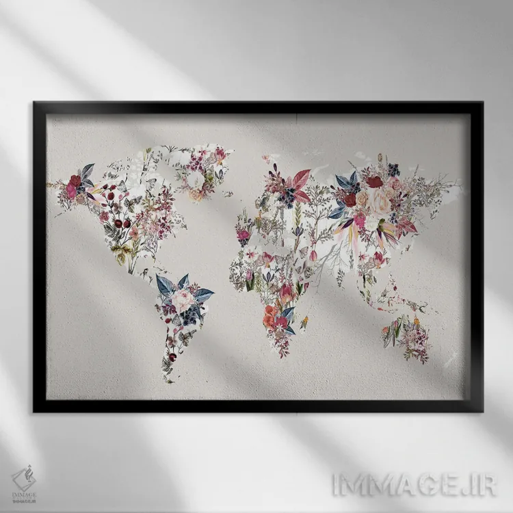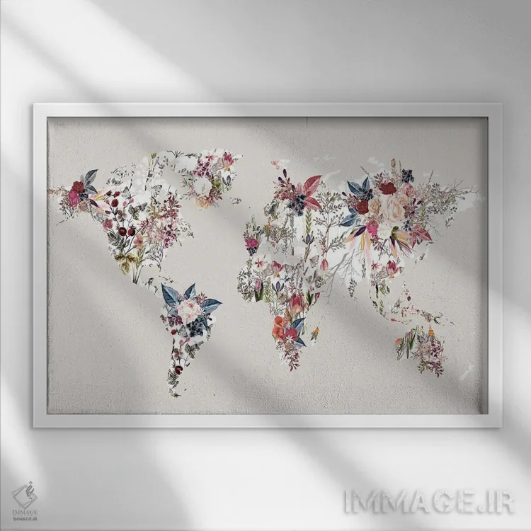 تابلو نقشه جهان گلدار ۲ اثر دیزاین فابریکن (استودیو طراحی دانمارکی)