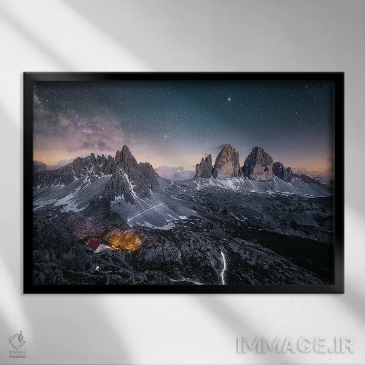 تابلو دولومیت‌ها در شب (کوه‌های ایتالیا) اثر فابیو آنتنور - نمای قاب‌دار مشکی