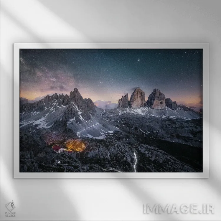 تابلو دولومیت‌ها در شب (کوه‌های ایتالیا) اثر فابیو آنتنور - نمای قاب‌دار سفید