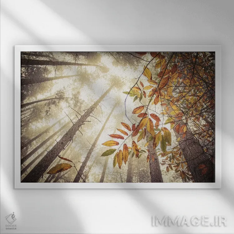 براساس پالت گرم اثر، قاب بلوط روشن (چوبی) پیشنهاد اول است و استخوانی ملایم مکمل. برای سفارشهای پروژهای با ابعاد و قابهای اختصاصی با ایماژ در تماس باشید.