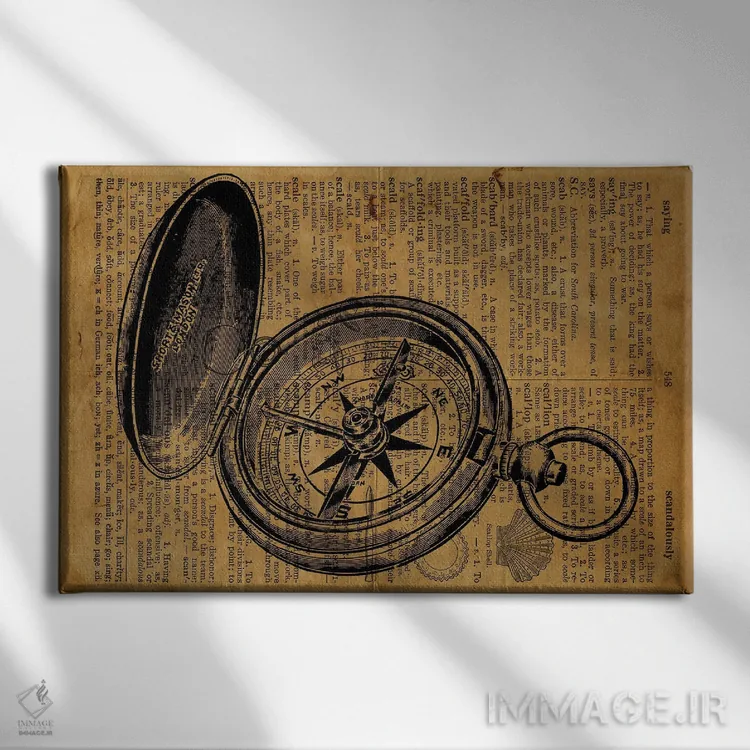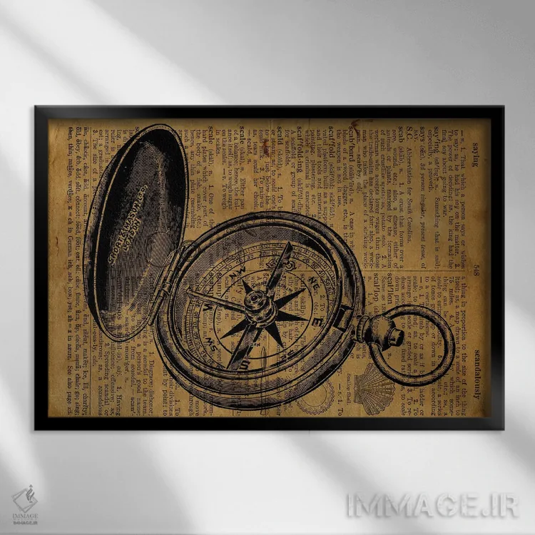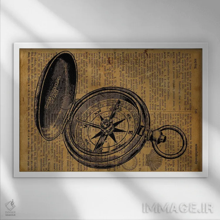 تابلو حکاکی قطبنما روی کاغذ قدیمی اثر فیشرکرافت (استودیوی خلاقانه)