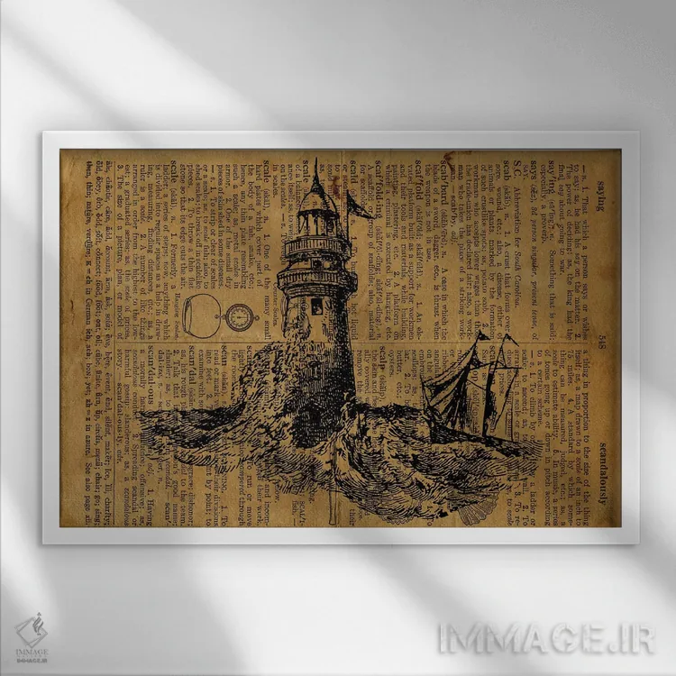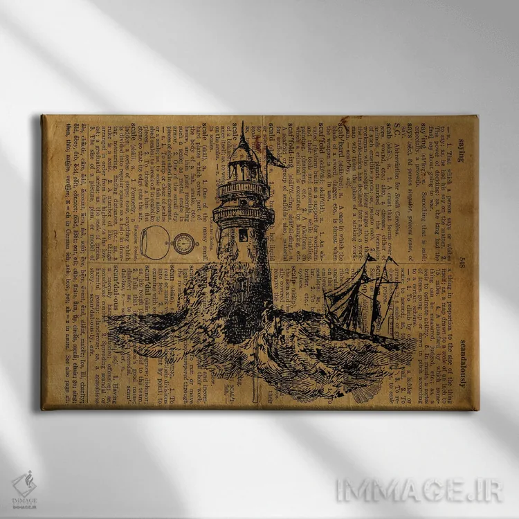 تابلو حکاکی فانوس دریایی قدیمی روی کاغذ قدیمی اثر فیشرکرافت (استودیوی خلاقانه)