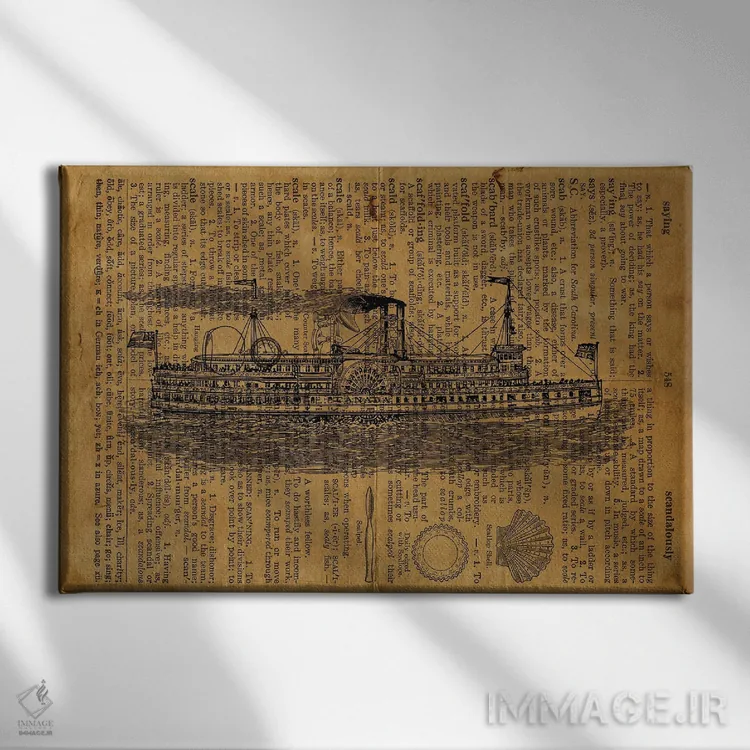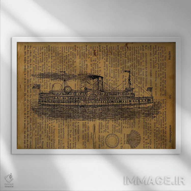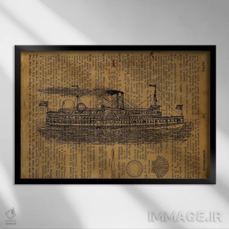 تابلو حکاکی کشتی بخار روی کاغذ قدیمی اثر فیشرکرافت (استودیوی خلاقانه)