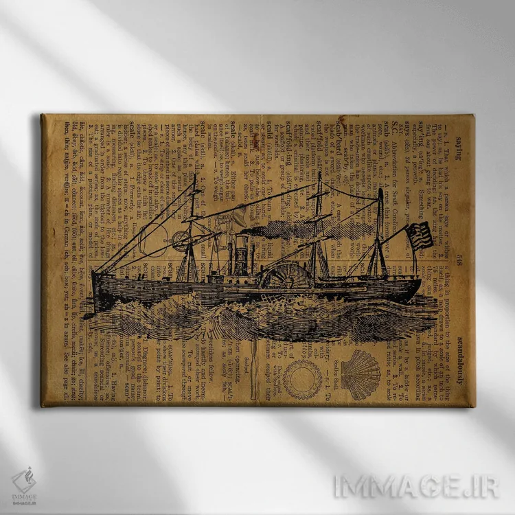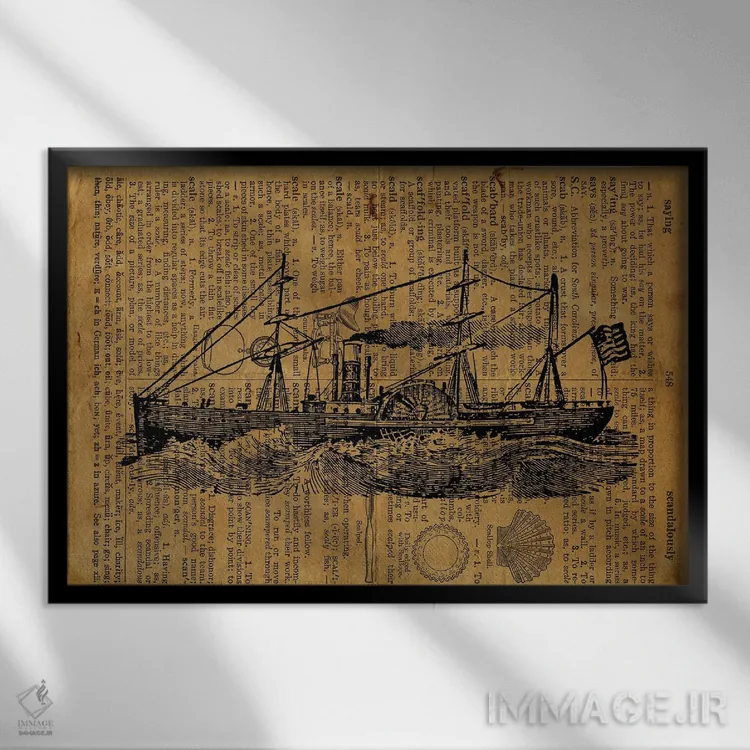 تابلو حکاکی کشتی بخار قدیمی روی کاغذ قدیمی اثر فیشرکرافت (استودیوی خلاقانه)