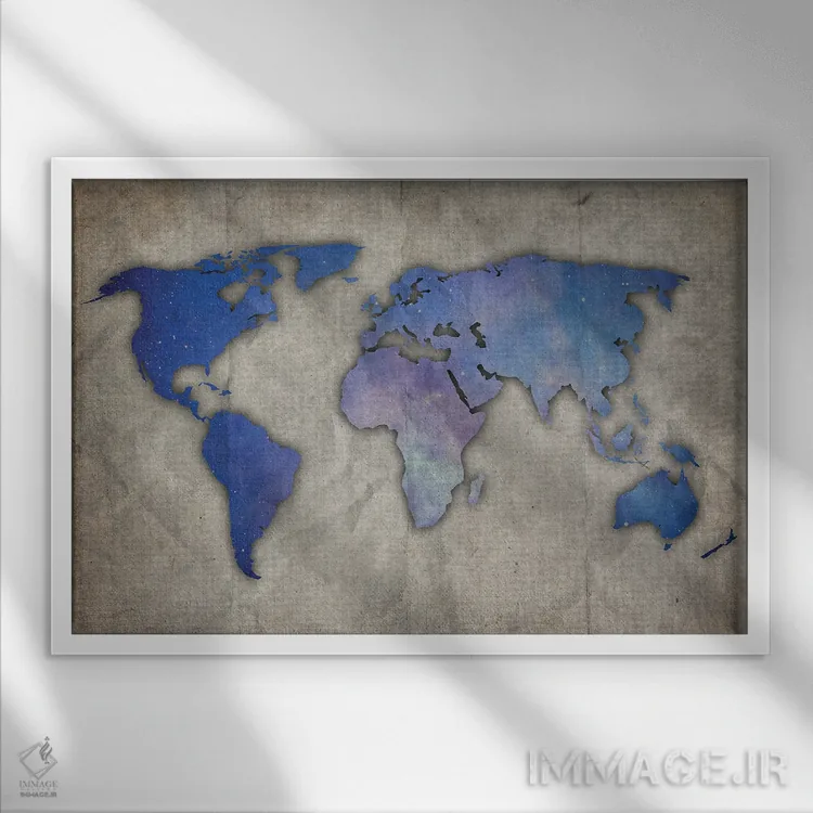 اگر دنبال یک اثر جوانپسند و دقیق هستید، «نقشه جهان آبی روشن و بنفش روی کاغذ قدیمی» اثرِ «فیشِرکرافت (استودیوی خلاقانه)» با موضوعِ این اثر در سبک هنری میدرخشد.