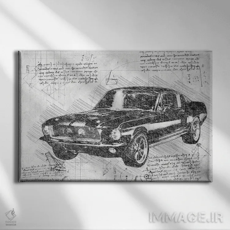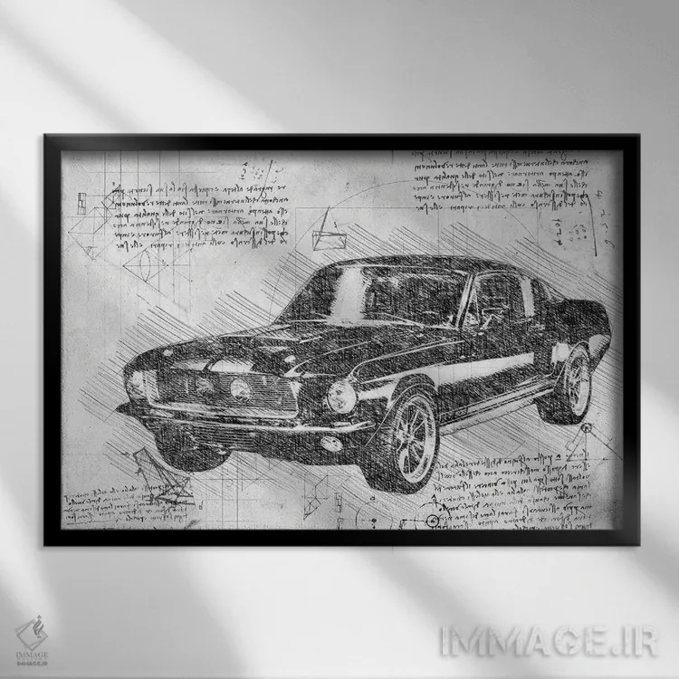 تابلو فورد ماستنگ مدل ۱۹۶۷ سیاه و سفید (خودروی ماسل) اثر فیشرکرافت (استودیوی خلاقانه)