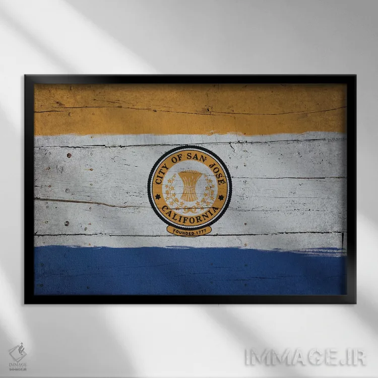 اگر دکور شما بر پایهی متن و تایپ است، «پرچم سن خوزه، کالیفرنیا با رنگ تازه روی تختهچوب» اثرِ «آیکانواس (شرکت چاپ هنری)» با سبک پرداختِ هنری انتخابی تمیز و کاربردی است.