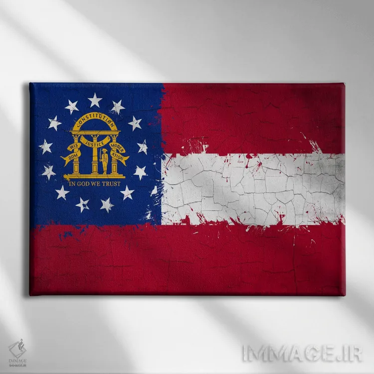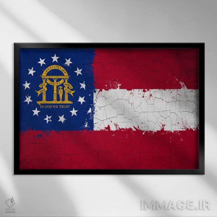 «پرچم ایالت جورجیا با رنگ ترکخورده تازه» اثرِ «فایو بای فایو کالکتیو» یک قاب شهری و مدرن است؛ موضوعِ این اثر با اجرای هنری، کنار مبلمان ساده خیلی خوب مینشیند.