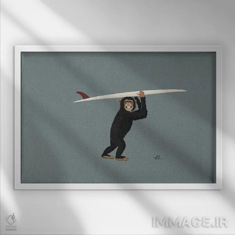 اگر میخواهید دیوار کمی سرزندگیِ محترمانه داشته باشد، «شامپانزه موجسوار» اثرِ «فابیان لاواتر» بافت و جزئیات را طوری نشان میدهد که نگاه میماند، برای راهروها و ورودیهای گرم گزینهٔ مناسبیست. هر بار نگاهش میکنید، یک جزئیات تازه به چشم میآید.
