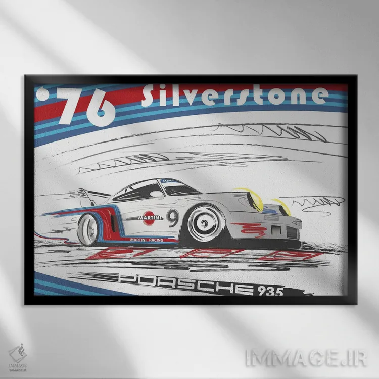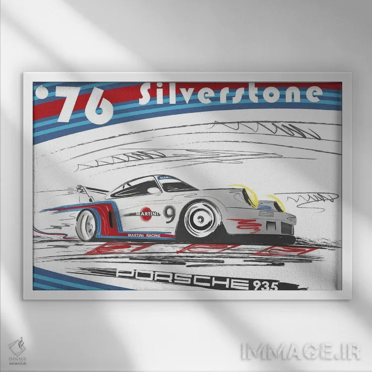 «پورشه ۹۱۱ مدل ۱۹۷۴ سیلورستون» اثرِ «فلای گرافیکس (استودیو/برند هنری)» با ریتمِ بصریِ منظم و لطیف، میتواند بهخوبی کنار مبلمان ساده و رنگهای خنثی بنشیند.