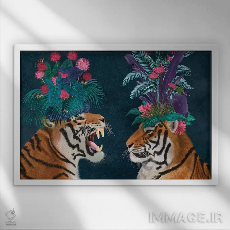 تابلو دکوراتیو دو ببر گلخانه ای اثر فب فانکی