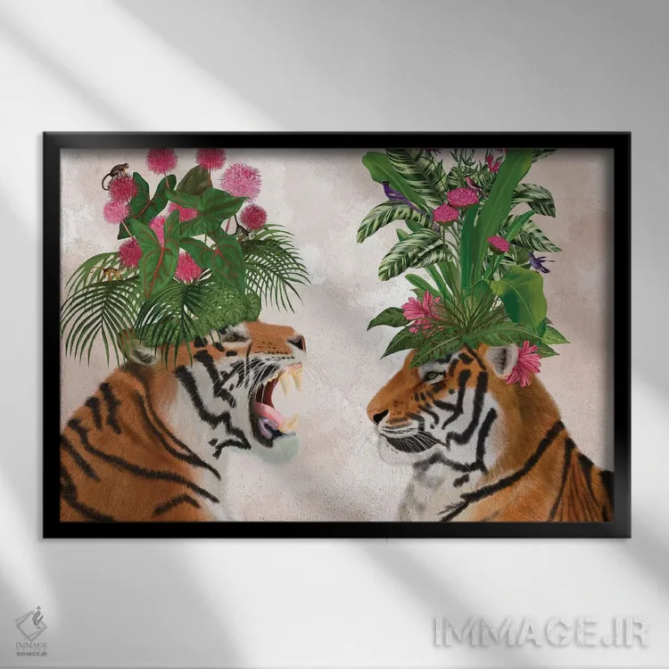 تابلو دکوراتیو دو ببر گلخانه ای اثر فب فانکی