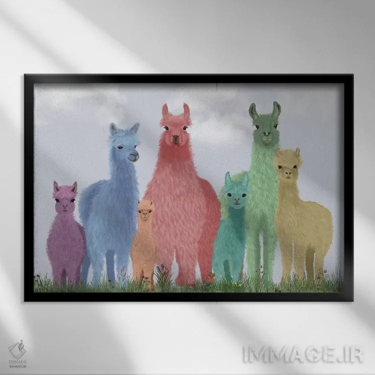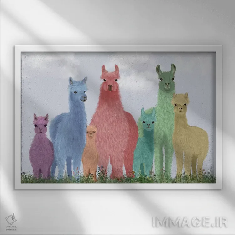 تابلو دکوراتیو خانواده لاما رنگ پاستلی اثر فب فانکی