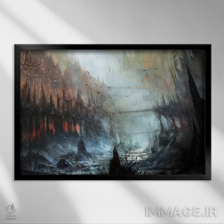 براساس پالت ترکیبی اثر، قاب بلوط روشن (چوبی) پیشنهاد اول است و استخوانی ملایم مکمل. برای سفارشهای پروژهای با ابعاد و قابهای اختصاصی با ایماژ در تماس باشید.