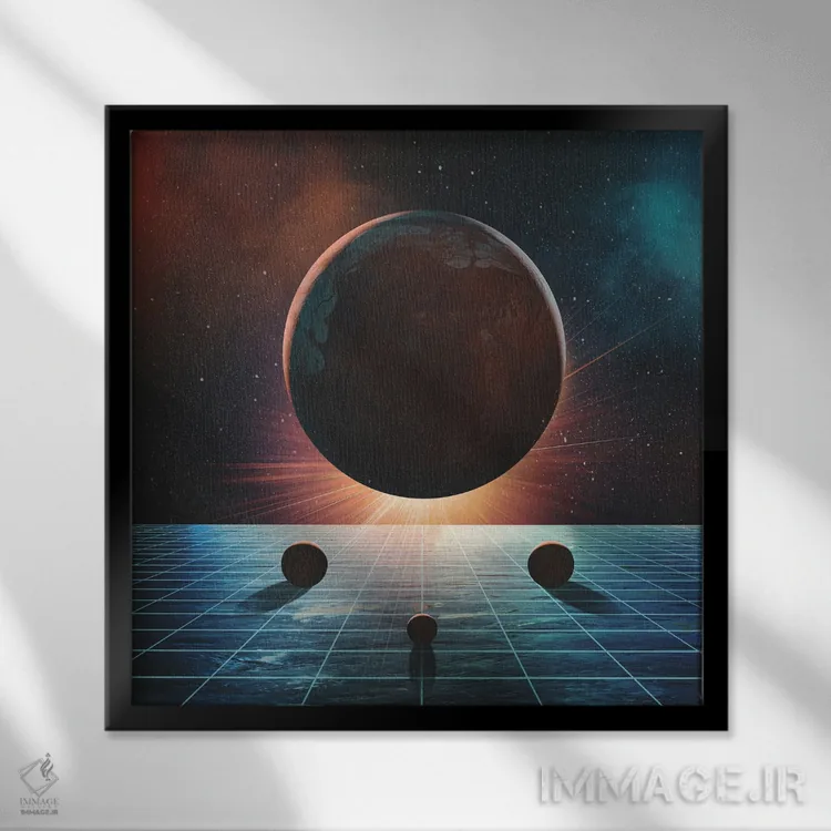 براساس پالت ترکیبی اثر، قاب تیک گرم (چوبی) پیشنهاد اول است و مشکی مات (فریم متوسط) مکمل. برای سفارشهای پروژهای با ابعاد و قابهای اختصاصی با ایماژ در تماس باشید.