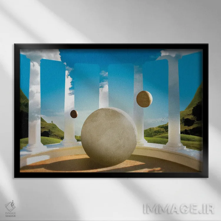 براساس پالت ترکیبی اثر، قاب تیک گرم (چوبی) پیشنهاد اول است و مشکی مات (فریم متوسط) مکمل. برای سفارشهای پروژهای با ابعاد و قابهای اختصاصی با ایماژ در تماس باشید.