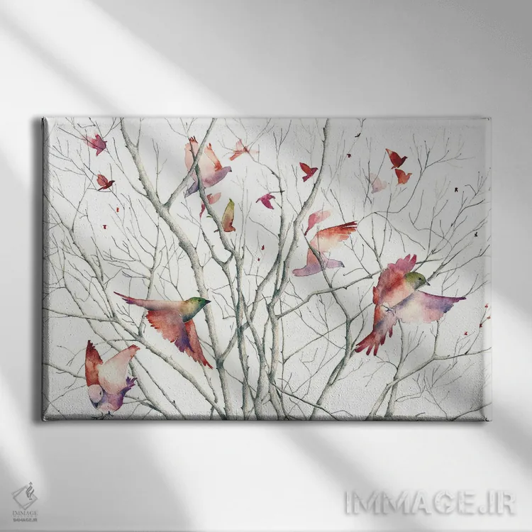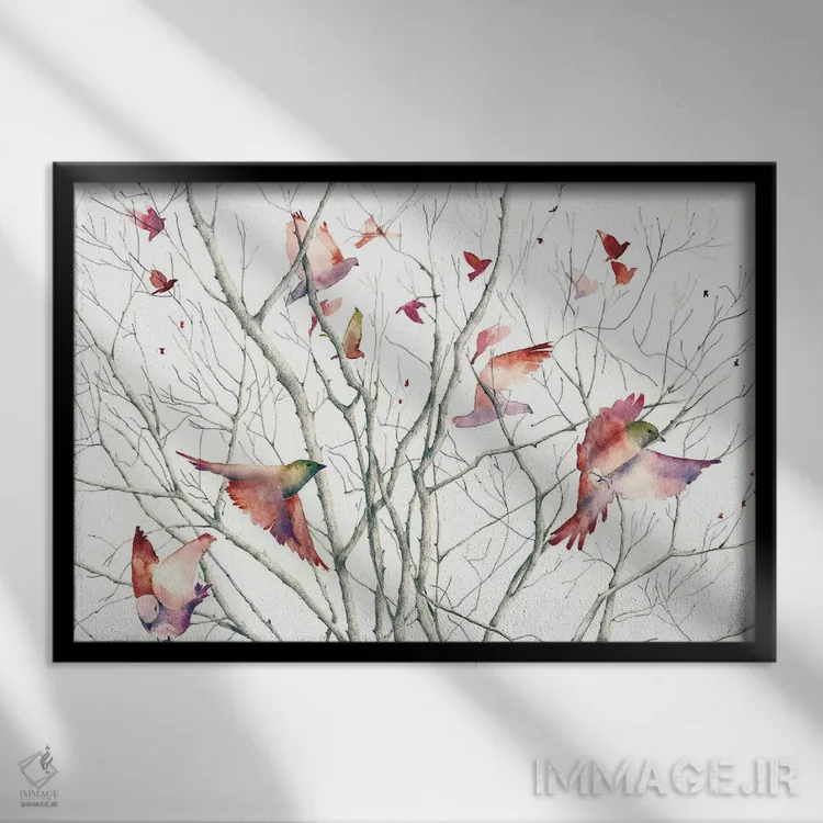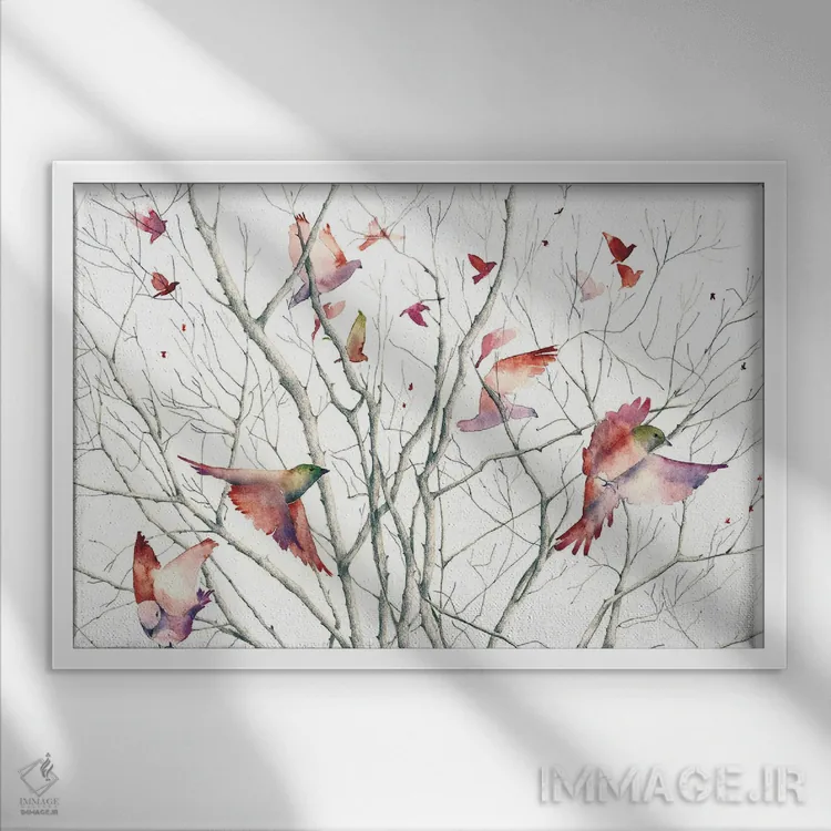 اگر به آثار حیوانات علاقه دارید، «پرندگان» اثرِ «فلاویا کودمی» به دیوار، انرژیِ نرم و زنده میدهد، برای دکورهای مدرن و مینیمال گزینهٔ مناسبیست. هر بار نگاهش میکنید، یک جزئیات تازه به چشم میآید.