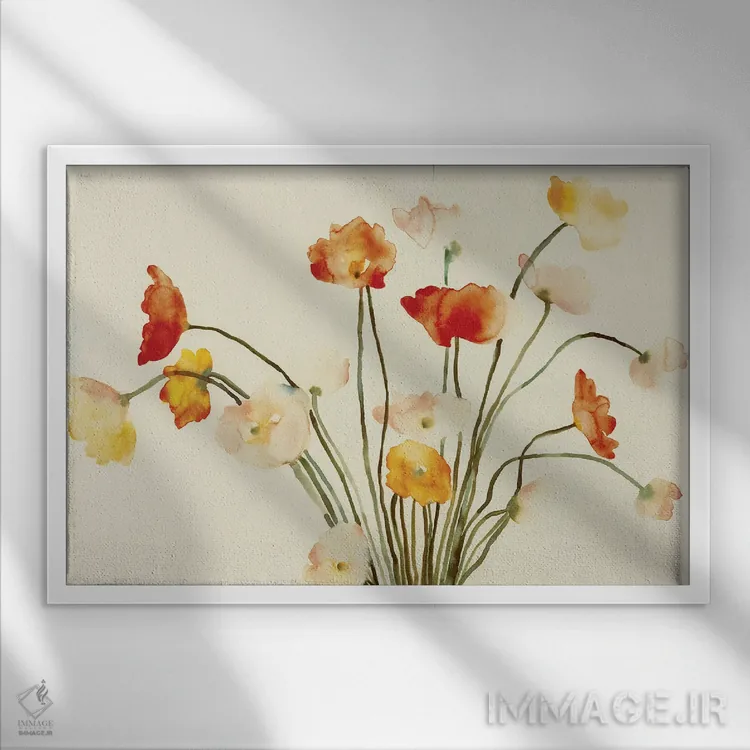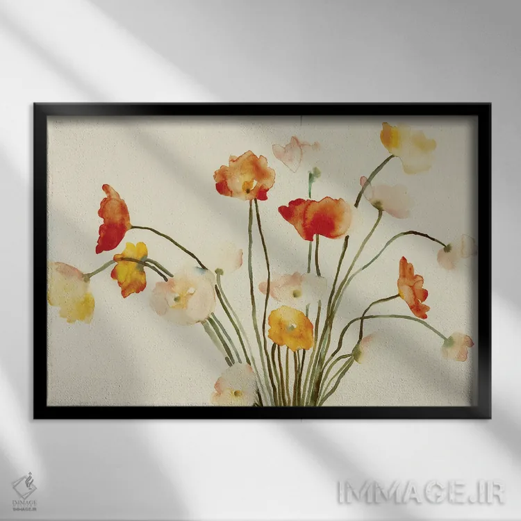 اگر دوست دارید دیوار روشنتر و آرامتر دیده شود، «دستهگل» اثرِ «فلاویا کودمی» حس طراوت را بدون شلوغی وارد اتاق میکند، برای هدیه دادن گزینهٔ مناسبیست. با قاب روشن یا چوبی، حس طبیعیتری پیدا میکند.