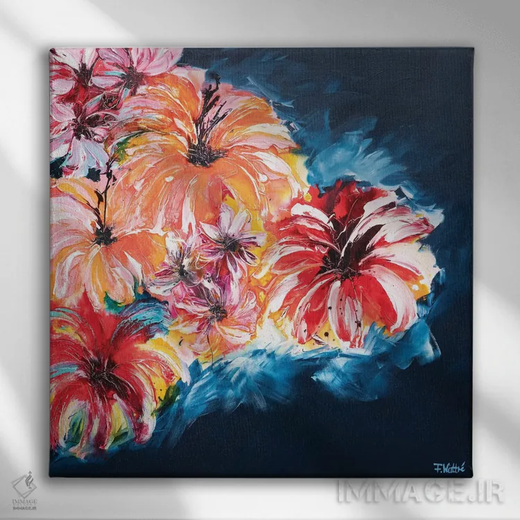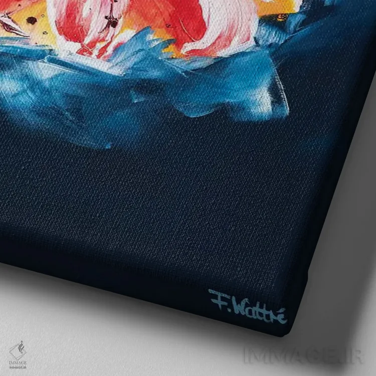 طراحی بوم گالری ایماژ بهگونهای است که اثر روی دیوار «پرداختشده» و حرفهای دیده شود—نه پرزرقوبرقِ بیپایه؛ بلکه دقیق و خوشپرداخت. بافت ظریف کنواس باعث میشود حس اثر هنری را در نگاه نزدیک نگه میدارد و همان «پرداخت» تفاوت را میسازد. چاپ جیکلی (Giclée) کمک میکند گرباورهاها را تمیزتر و طبیعیتر نشان میدهد. حاصل کار، یک تابلو خوشنشین است که هم از دور اثرگذار است و هم از نزدیک خوشخوان.