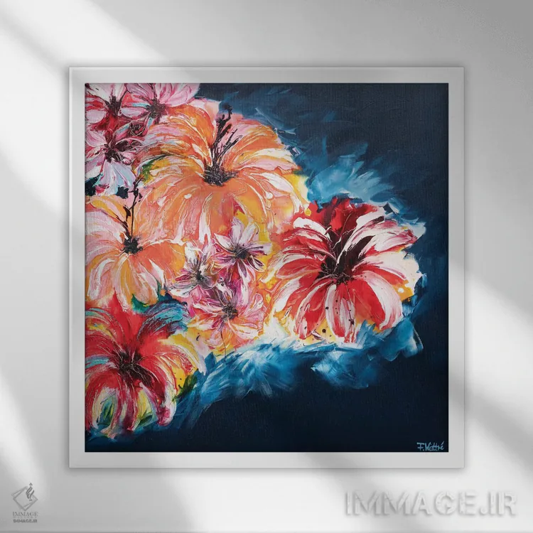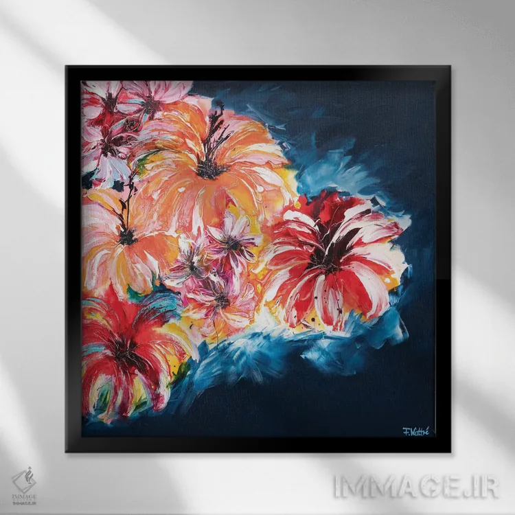 براساس پالت ترکیبی اثر، قاب تیک گرم (چوبی) پیشنهاد اول است و مشکی مات (فریم متوسط) مکمل. برای سفارشهای پروژهای با ابعاد و قابهای اختصاصی با ایماژ در تماس باشید.