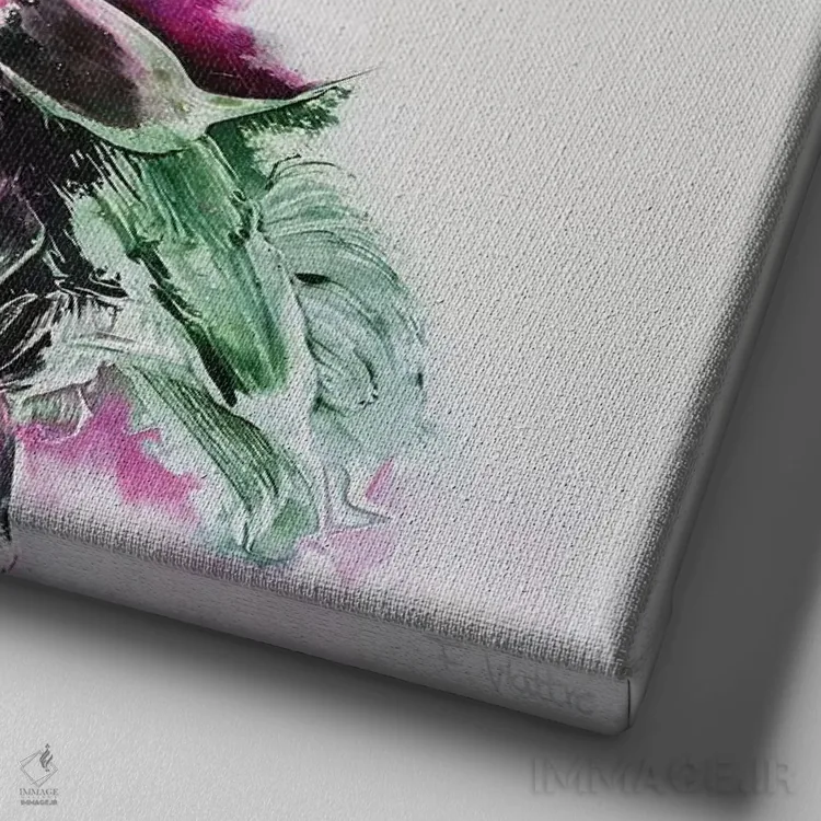 بوم گالری ایماژ نسخهی دکوراتیوِ سطحبالا از یک اثر هنری است. روی کنواس بدون اسید با بافت ظریف و یکنواخت با چاپ هنری به استاندارد جیکلی (Giclée) با سیستم رنگ Epson UltraChrome HDR برای نیمسایههای نرمتر و سایههای جزئیتر؛ خروجی، یک «تابلو» است نه یک چاپ ساده. تابلو پس از آمادهسازی روی کلاف کشیده میشود و نصب آن ساده و بیدردسر است.