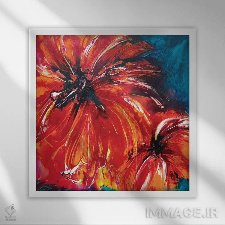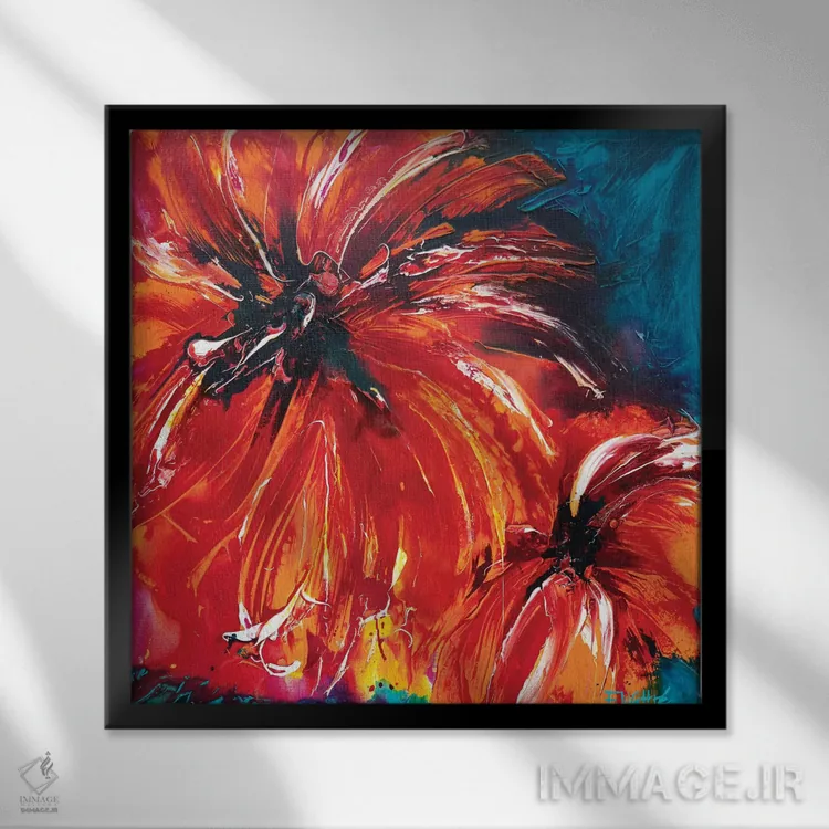 براساس پالت ترکیبی اثر، قاب تیک گرم (چوبی) پیشنهاد اول است و مشکی مات (فریم متوسط) مکمل. برای سفارشهای پروژهای با ابعاد و قابهای اختصاصی با ایماژ در تماس باشید.