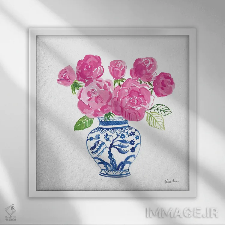 تابلو رزهای چینوار روی زمینهٔ سفید ۱ اثر فریده زمان
