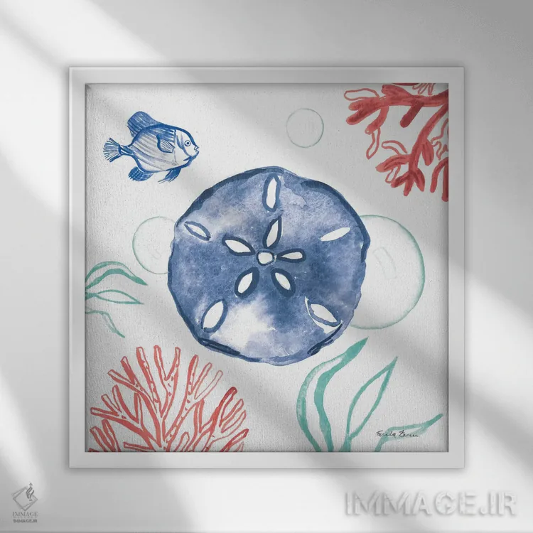 تابلو گوهرهای ساحلی ۴، غار مرجانی اثر فریده زمان - نمای قاب‌دار سفید