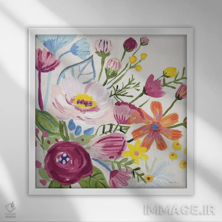 اگر به دکورهای طبیعی علاقه دارید، «گلهای کلاسیک ۲ نسخه ۲ (برشزده)» اثرِ «فریده زمان» تعادل رنگیِ لطیفی به چیدمان میدهد، برای فضای غذاخوری گزینهٔ مناسبیست. جزئیاتش از نزدیک هم ارزش تماشا دارد.