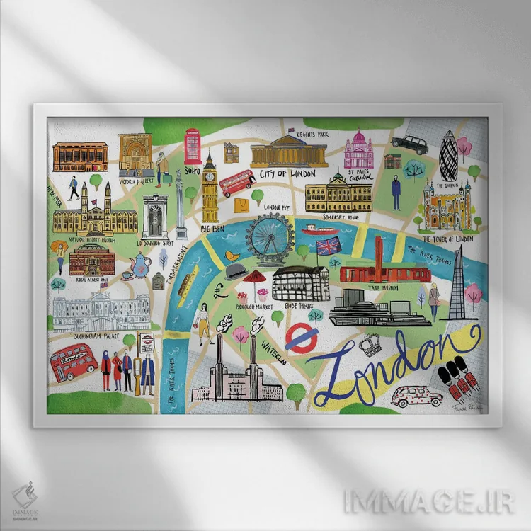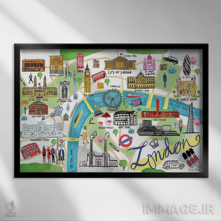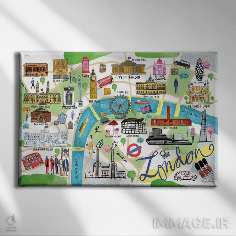 اگر دکور شما بر پایهی متن و تایپ است، «نقشهٔ لندن» اثرِ «فریده زمان» با سبک پرداختِ هنری انتخابی تمیز و کاربردی است.