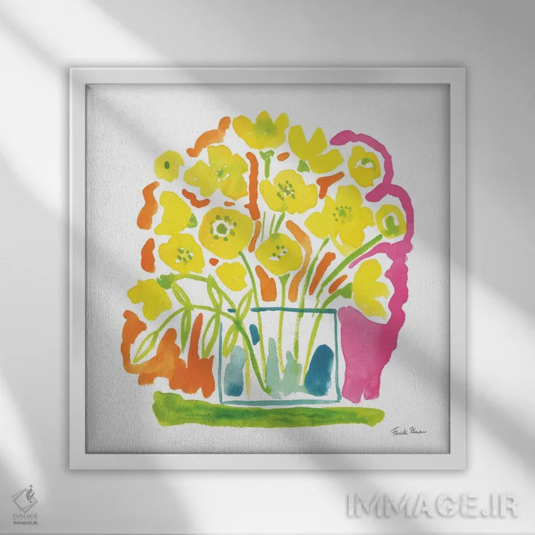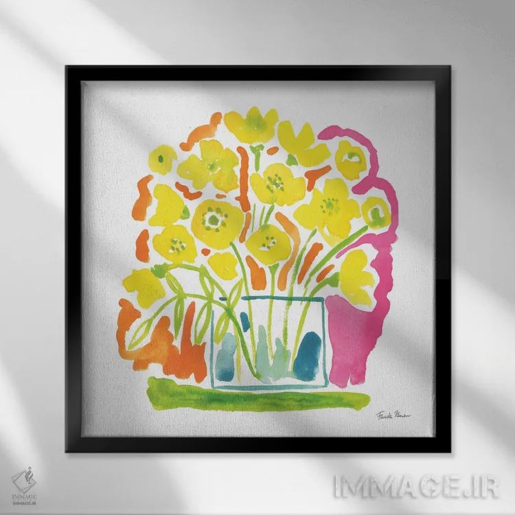 اگر دوست دارید دیوار روشنتر و آرامتر دیده شود، «دستهگل تازه» اثرِ «فریده زمان» جزئیات نزدیک را چشمنواز نشان میدهد، برای خانههایی با نور طبیعی گزینهٔ مناسبیست. در کنار گیاهان آپارتمانی، هماهنگتر هم میشود.