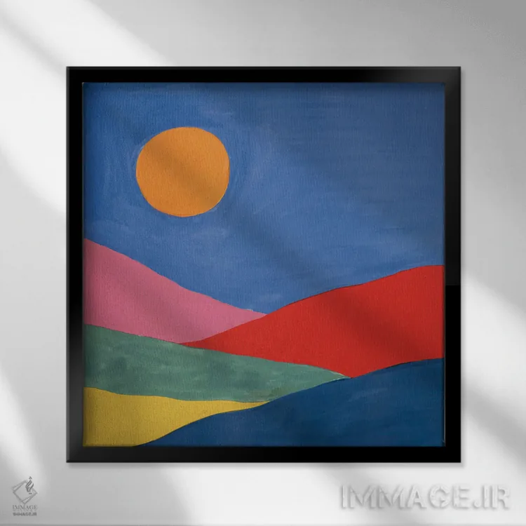 براساس پالت ترکیبی اثر، قاب تیک گرم (چوبی) پیشنهاد اول است و مشکی مات (فریم متوسط) مکمل. برای سفارشهای پروژهای با ابعاد و قابهای اختصاصی با ایماژ در تماس باشید.