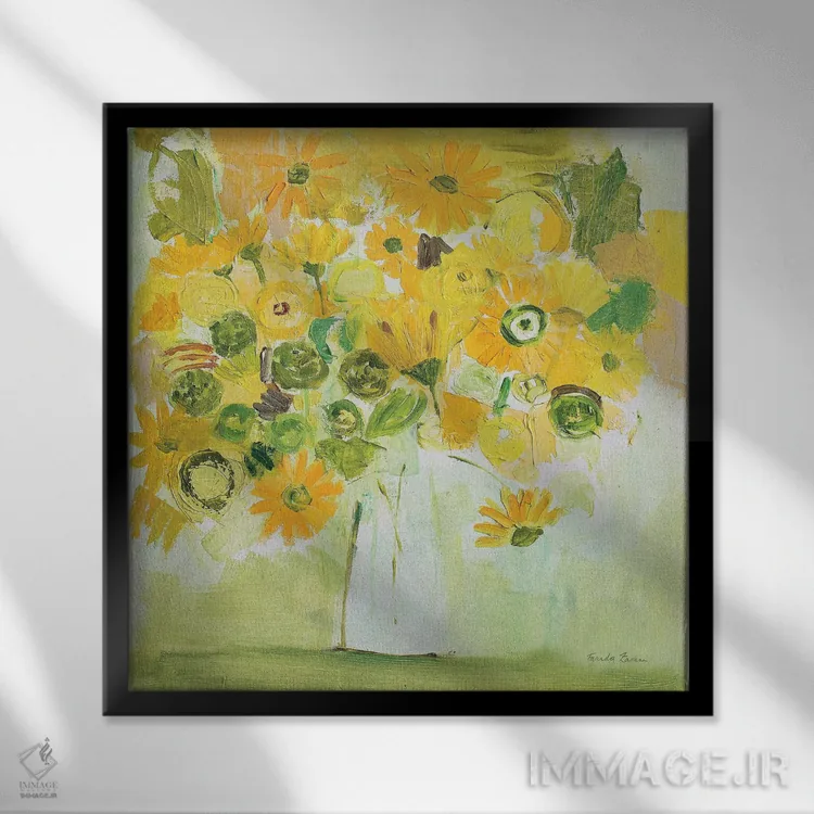 براساس پالت ترکیبی اثر، قاب تیک گرم (چوبی) پیشنهاد اول است و مشکی مات (فریم متوسط) مکمل. برای سفارشهای پروژهای با ابعاد و قابهای اختصاصی با ایماژ در تماس باشید.