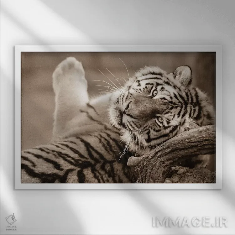 این اثر با عنوان «ببر سوم» اثرِ «گوران آناستاسوفسکی (عکاس طبیعت مقدونیه)» بافت و جزئیات را طوری نشان میدهد که نگاه میماند؛ برای اتاق کودک (بدون لحن کودکانه) انتخابی خوشسلیقه است. به دیوار، قصه میدهد—اما قصهای آرام و شیک.